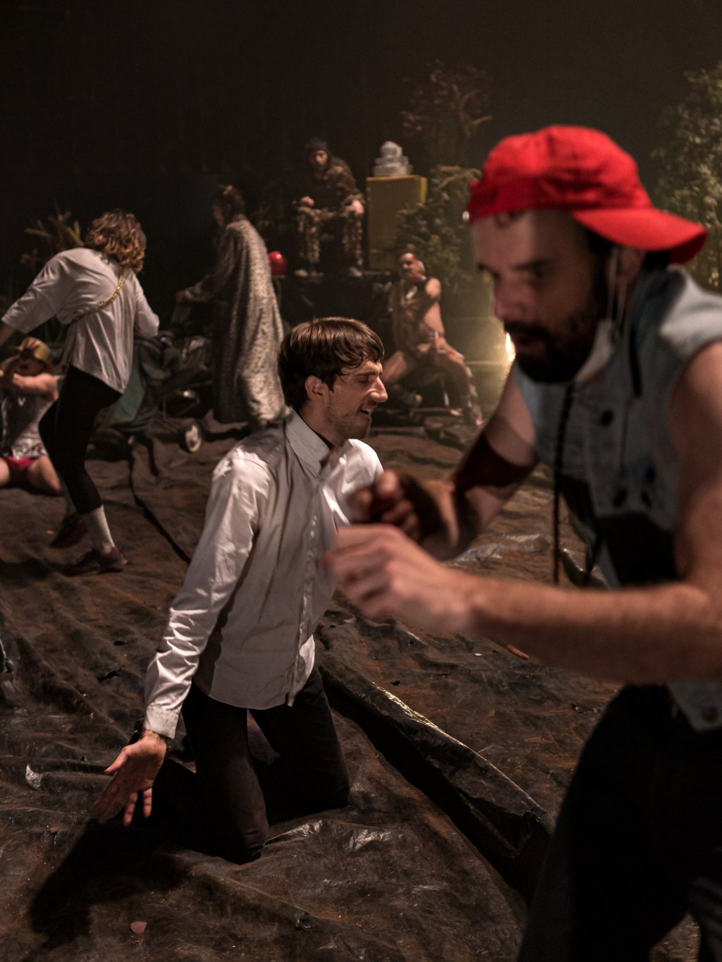 Sur le plateau, ne persiste que quelques reliquats de notre société de consommation au milieu d’une friche envahie par la nature et les danseurs. Dans une atmosphère post apocalyptique, la chorégraphe invite le public à réfléchir sur la destinée de notre planète en phase d’autodestruction. Les huit interprètes survivent au milieu de ce chaos en criant, en chantant, en respirant à pleins poumons bouches ouvertes, en se touchant, en se battant, en s’embrassant, en s’enlaçant, etc. Toute une symbolique de vie qui nous est défendu aujourd’hui.